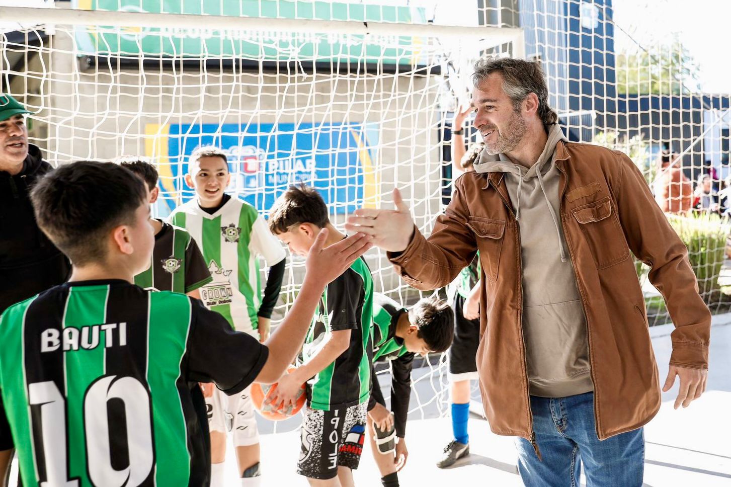Achával con los jóvenes de la Liga Municipal de fútbol: «Seguimos acompañando al deporte pilarense»