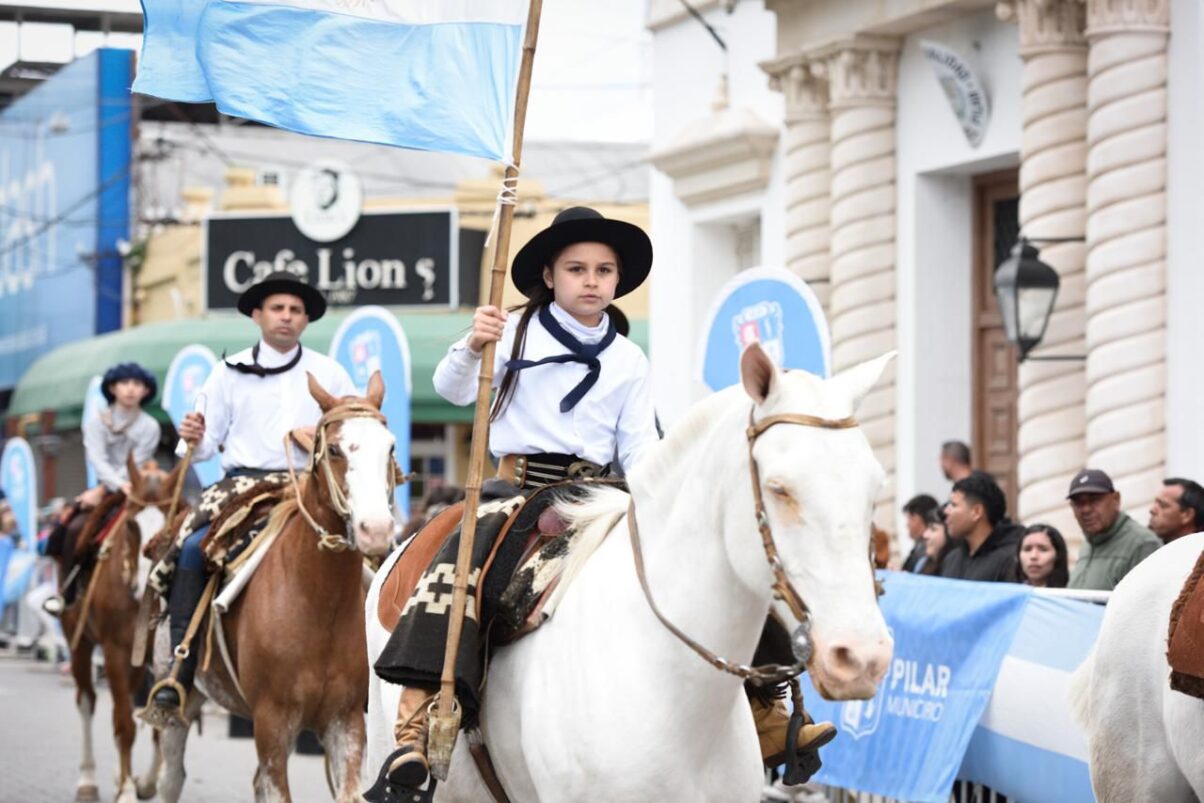El desfile fue encabezado por los Héroes de Malvinas junto a la Virgen del Pilar, seguido por los Bomberos Voluntarios, las fuerzas de seguridad, la Universidad Nacional de Pilar, los adultos mayores, las instituciones educativas, sociales y deportivas, y los merenderos. El cierre estuvo a cargo de los centros tradicionalistas de todo el distrito.