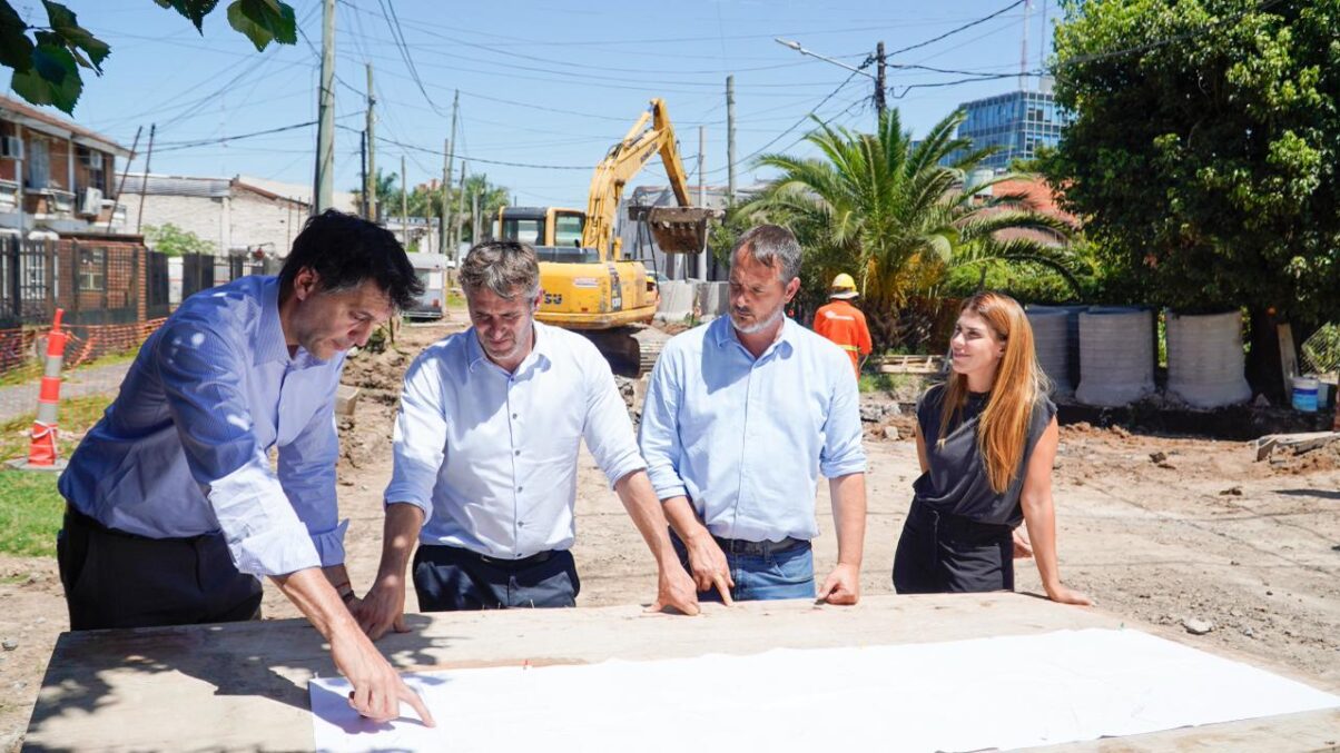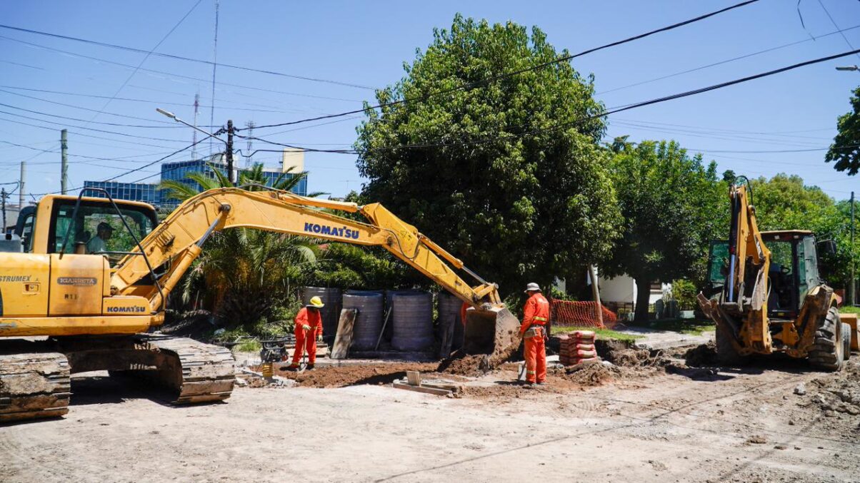Durante la recorrida, el jefe comunal destacó: “Esta obra hidráulica, tan esperada por la comunidad, sigue avanzando todos los días. Es muy importante porque va a mejorar el drenaje y la circulación del agua en toda la zona del centro».