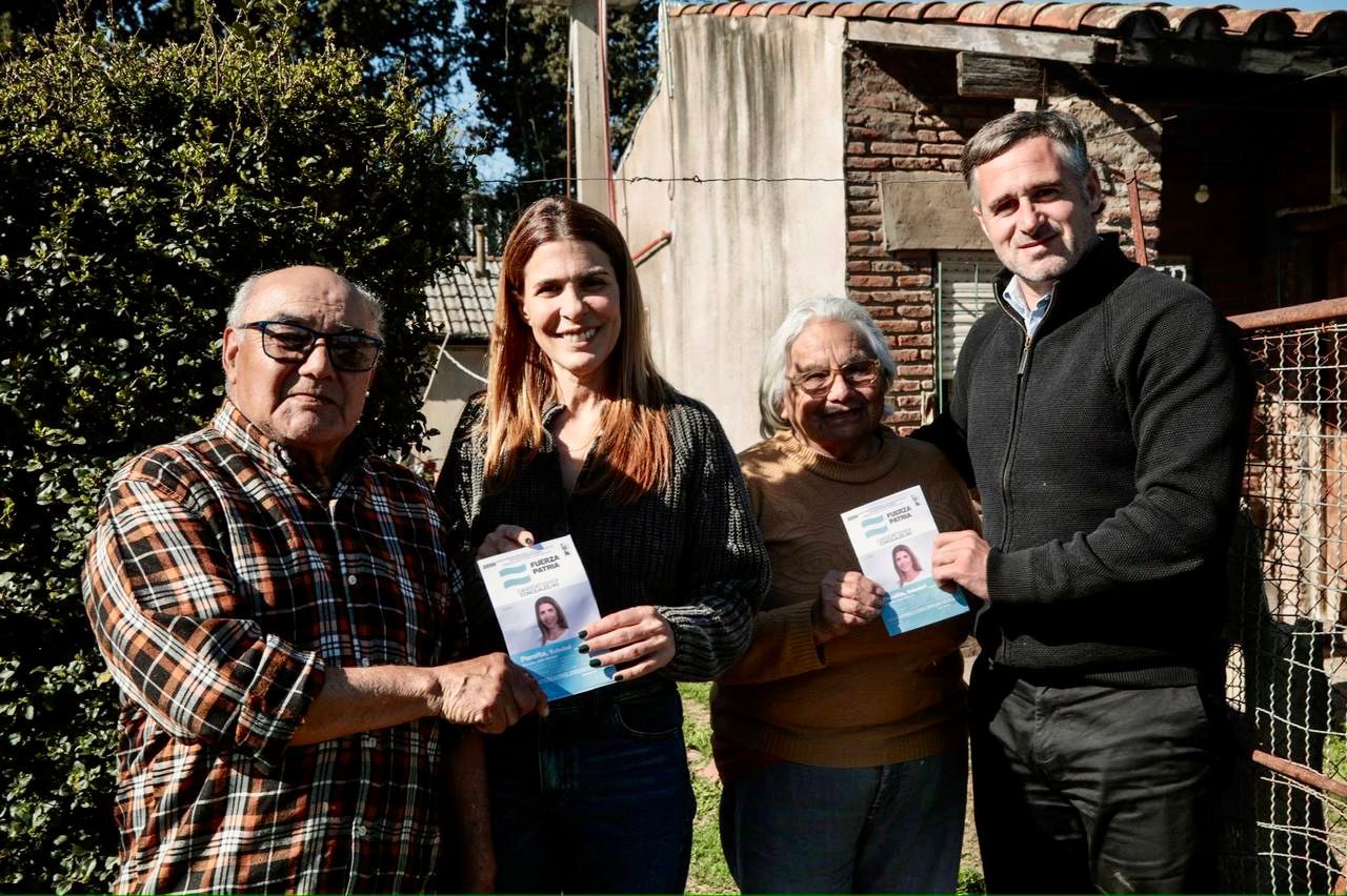 El intendente Federico Achával y Soledad Peralta, primera candidata a concejal por Fuerza Patria Pilar, le acercaron la primera boleta a Marta y Carlos, un matrimonio de vecinos jubilados. «Esta es la fuerza para defender a nuestros adultos mayores y para seguir transformando Pilar», expresó Peralta.
