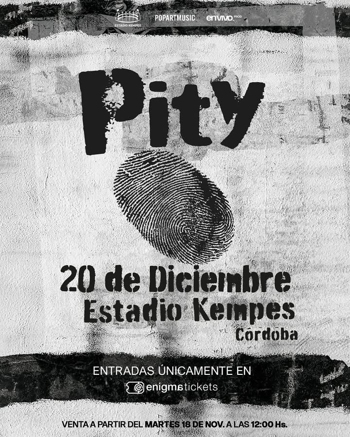 La comunicación oficial del show en Córdoba confirma que el regreso de Pity Álvarez se realizará en el Estadio Kempes, con la organización ya definida.